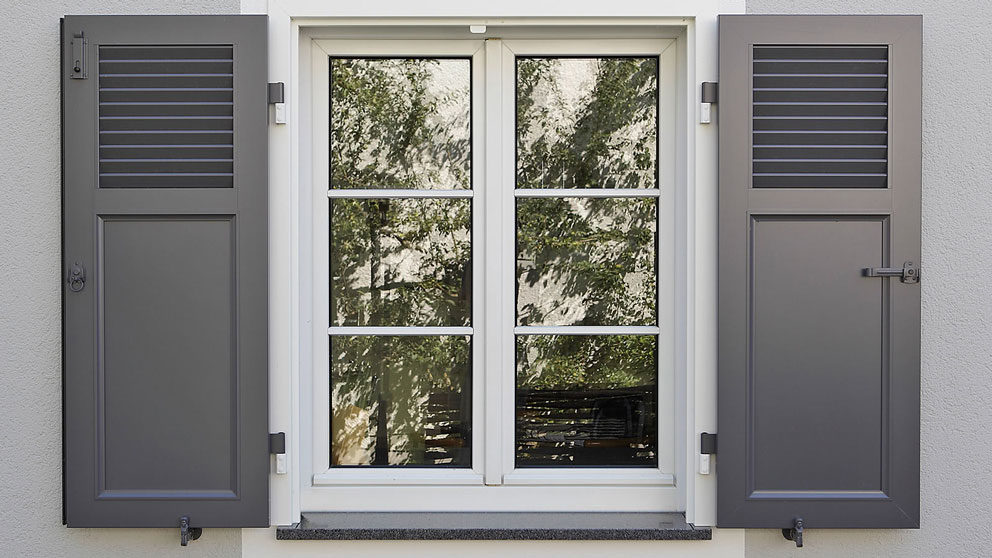 EHRET Klappläden setzen Akzente und Massstäbe, die im Einklang mit der Architektur ein harmonisches und einzigartiges Erscheinungsbild schaffen.